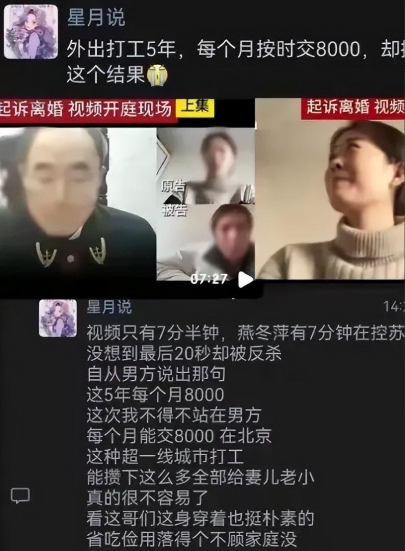 短短的一句话,直接把燕冬萍七分钟的控诉给驳回了,风向也大变样,开始替男子打抱不平。