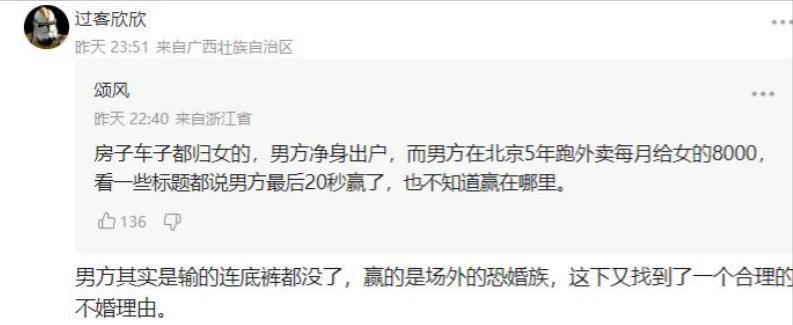 这就是在前段时间线上的一出“离婚案”,让不少人为此“恐婚”。