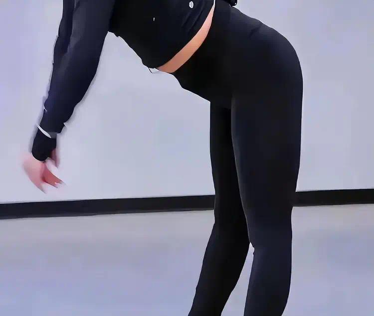 紧致修身的瑜伽裤,把她的水桶腰完美呈现出来。