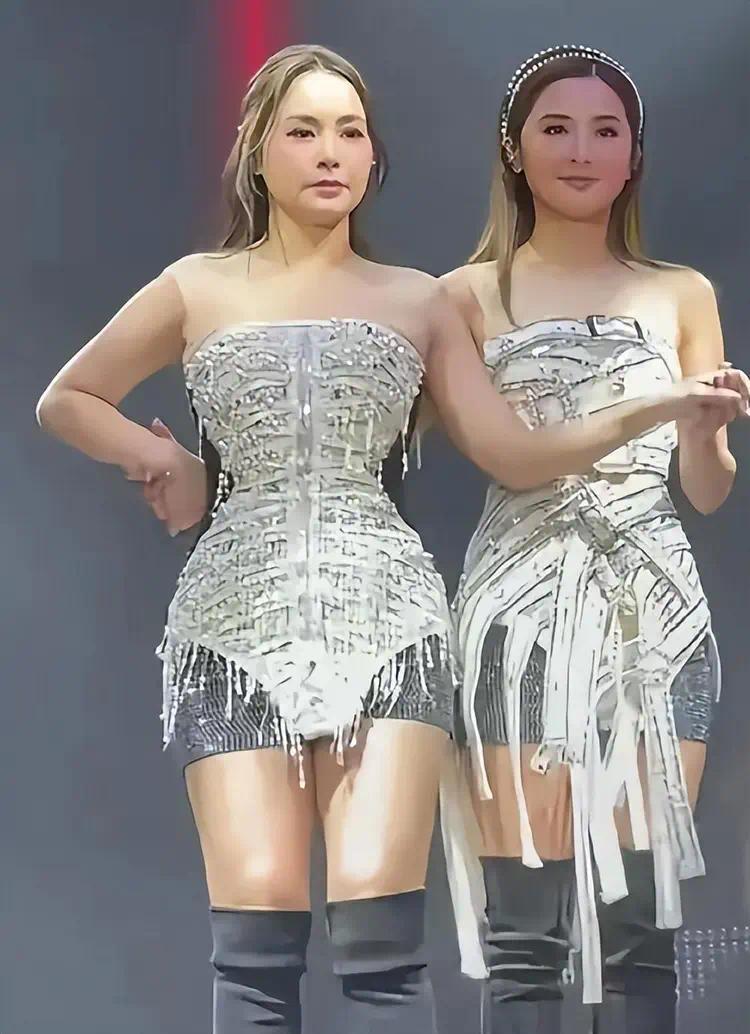 阿Sa十年如一日的瘦,但钟欣潼却胖了一圈又一圈,唱跳的时候,像企鹅一样笨重。