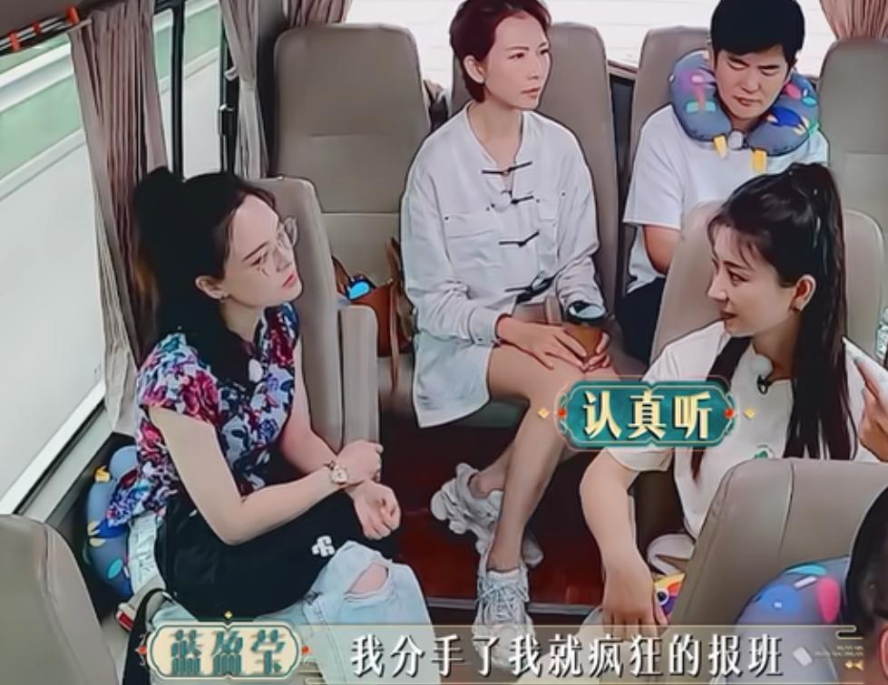 从蓝盈莹在节目中的表情和言语中,不难看出她对与曹骏分手一事或许心存后悔。当听到大家讨论不吃回头草时,她的眼神中闪过一丝落寞,那一瞬间的神情,仿佛在诉说着她内心深处的遗憾。坐在一旁的陶欣然,这位阅历丰富的 “过来人”,似乎一眼就看穿了蓝盈莹的心思。她微微前倾身体,目光温柔地看着蓝盈莹,轻声说道:“交给时间。” 这简短的四个字,却蕴含着无尽的深意。