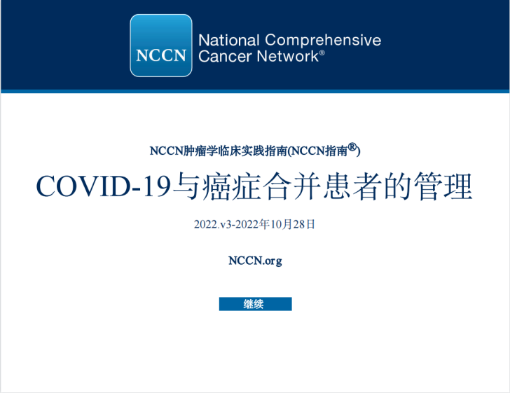 疫情期间,癌症患者作为一类特殊人群需要我们重点关注。美国国家综合癌症网络(NCCN)更新了癌症患者及新冠肺炎相关指南(Version-3.2022),针对这部分特殊人群给予了相应的管理建议。