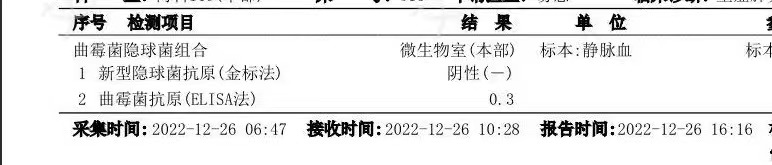 2022-12-29 患者近期有发热,送检痰培养组合提示疑似曲霍菊菌丝,曲霉抗原升高,考虑合并曲霉感染