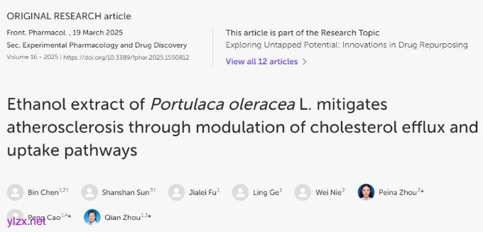Chen B, Sun S, Fu J, et al. Ethanol extract of Portulaca oleracea L. mitigates atherosclerosis through modulation of cholesterol efflux and uptake pathways. Front Pharmacol. 2025;16:1550812. Published 2025 Mar 19. doi:10.3389/fphar.2025.1550812