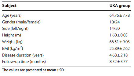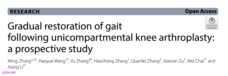 J Orthop Surg Res:单髁膝关节置换术后步态的恢复研究
