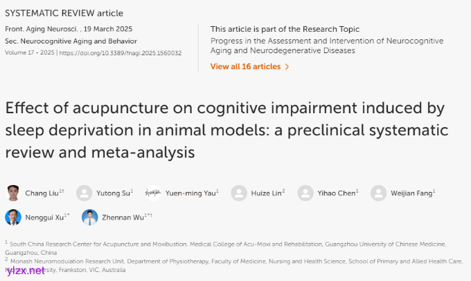 Liu C, Su Y, Yau YM, et al. Effect of acupuncture on cognitive impairment induced by sleep deprivation in animal models: a preclinical systematic review and meta-analysis. Front Aging Neurosci. 2025;17:1560032. Published 2025 Mar 19. doi:10.3389/fnagi.2025.1560032