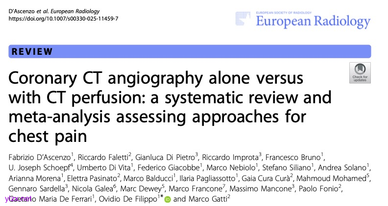 Fabrizio D'Ascenzo,Riccardo Faletti,Gianluca Di Pietro,et al.Coronary CT angiography alone versus with CT perfusion: a systematic review and meta-analysis assessing approaches for chest pain.DOI:10.1007/s00330-025-11459-7