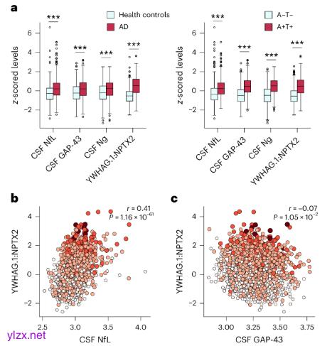 在长达15年的随访研究中,CSF YWHAG:NPTX2比值展现出强大的预后价值。经过多重因素校正后,该指标每增加一个标准差,A+T1+认知正常者转化为轻度认知障碍的风险就增加3倍,而轻度认知障碍进展为痴呆的风险增加2.2倍。这意味着,医生未来可能通过简单的脑脊液检测,就能准确预测哪些AD高风险人群会出现认知衰退,哪些人则能保持认知韧性,从而为个性化干预提供关键依据。