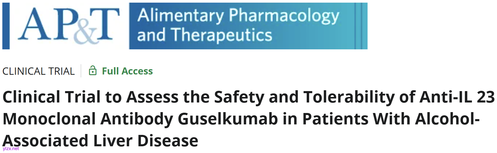 酒精性肝病(alcoholic liver disease,ALD)是由于长期大量饮酒导致的肝脏疾病。ALD的临床和组织病理学形式包括孤立性脂肪变性、进行性脂肪性肝炎伴纤维化积累、肝硬化及其并发症,包括肝细胞癌(HCC)。此外,大约三分之一的过度饮酒者可发展为酒精相关性肝炎,这是一种严重的急性疾病,以失代偿性肝病和高短期死亡率为特征。虽然ALD有多种危险因素,但最重要的死亡率预测因素是纤维化阶段和戒酒。因此,降低酒精使用水平和发现高危人群的战略和公共卫生政策可以减少因肝病引起的代偿失调和死亡率。目前,还没有FDA批准的治疗ALD的药物,大多数治疗策略都集中在支持治疗和戒酒上。IL-23/IL-17信号通路在肝脏炎症和损伤中起重要作用,阻断这一通路可能逆转肝损伤。古塞库单抗(Guselkumab)是一种针对IL-23的特异性单克隆抗体,已被批准用于治疗银屑病,因此被认为可能对ALD患者有益。基于这一假设,研究人员设计了一项临床试验,旨在评估古塞库单抗在ALD患者中的安全性和耐受性。这篇研究由来自加州大学圣地亚哥分校的Luis Antonio Diaz教授及其团于2025年4月发表在Alimentary Pharmacology & Therapeutics期刊。