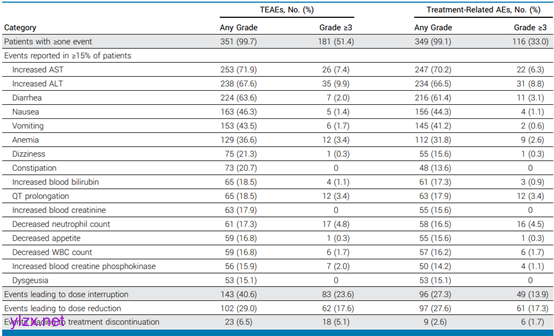 他雷替尼的安全性表现良好,大多数不良事件为轻度至中度。最常见的治疗相关不良事件包括胃肠道反应(如腹泻、恶心和呕吐)和肝功能异常(如AST和ALT升高)。这些不良事件大多为1级或2级,表明他雷替尼的耐受性较好。神经系统不良事件的发生率较低,这与他雷替尼对TrKB的选择性较高有关,可能减少了神经毒性的发生。