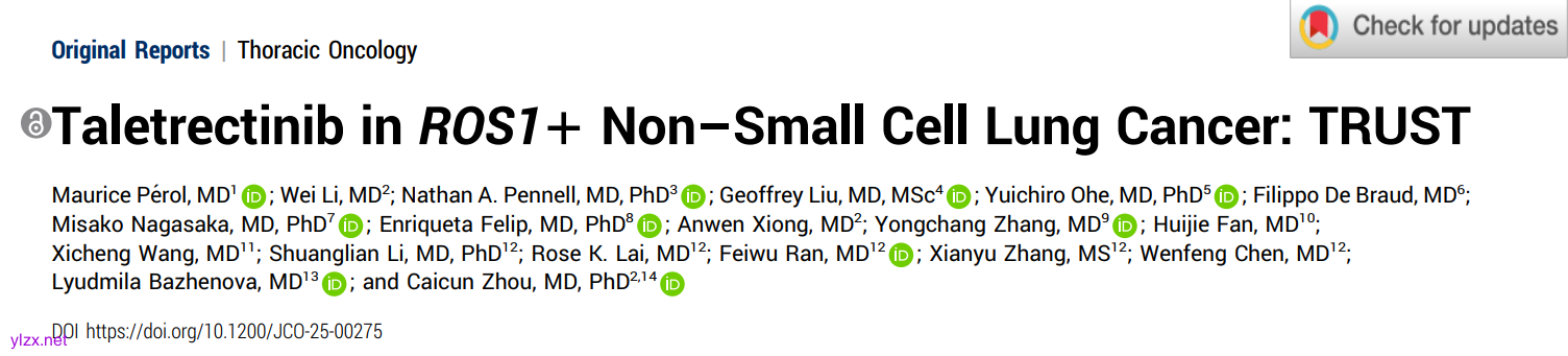 JCO | TRUST研究结果:他雷替尼在ROS1阳性NSCLC患者中的高缓解率与持久疗效