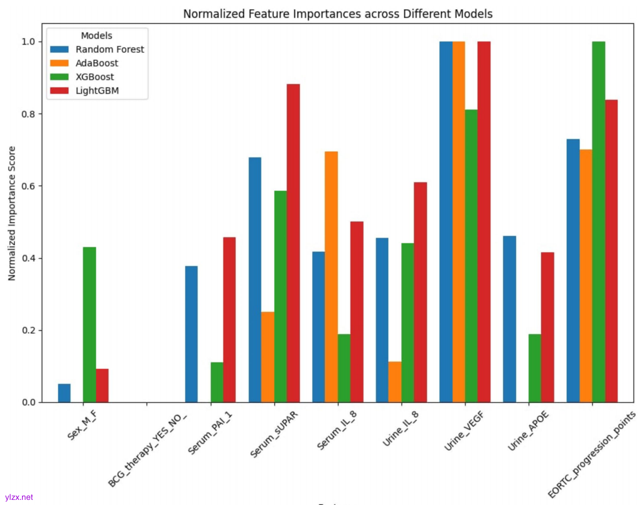 该研究评估的生物标志物包括血液中的纤溶酶原激活物抑制剂1(PAI-1)、可溶性尿激酶型纤溶酶原激活物受体(suPAR)、IL-8以及尿液中的IL-8、VEGF和APOE。研究人员分析了223例NMIBC患者在接受TURB前采集的血液和尿液样本。该研究的主要结局是肿瘤复发或进展。