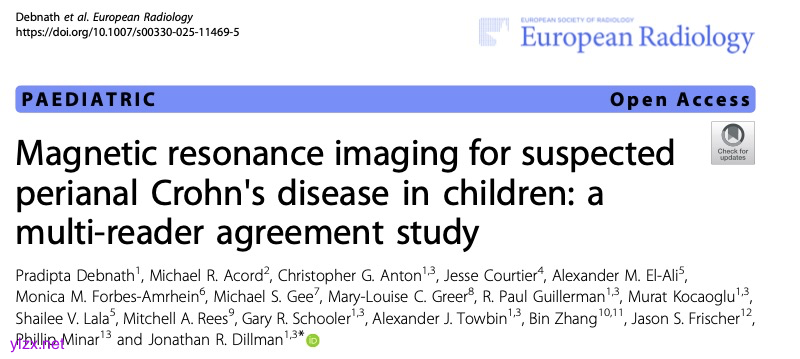 Pradipta Debnath,Michael R Acord,Christopher G Anton,et al.Magnetic resonance imaging for suspected perianal Crohn's disease in children: a multi-reader agreement study.DOI:10.1007/s00330-025-11469-5