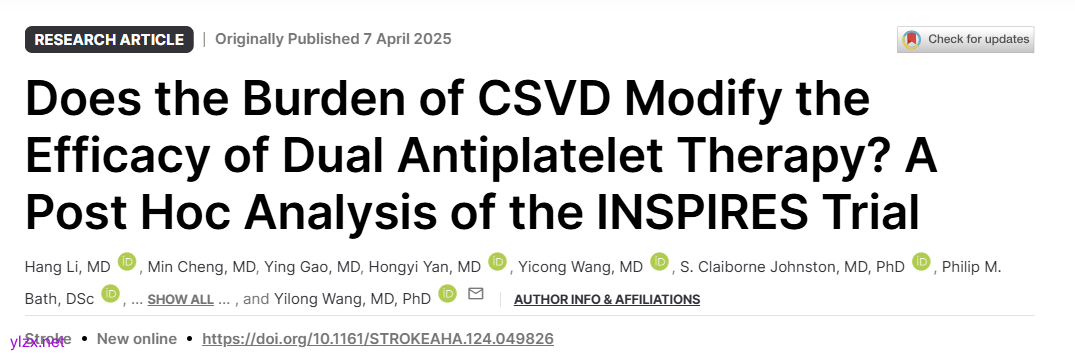 Li H, et al. Does the Burden of CSVD Modify the Efficacy of Dual Antiplatelet Therapy? A Post Hoc Analysis of the INSPIRES Trial. Stroke.
