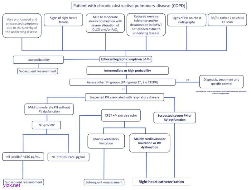 基于现有证据和临床经验,SEPAR专家制定出一套按疾病类型分层的PH诊断策略建议。该流程图强调: