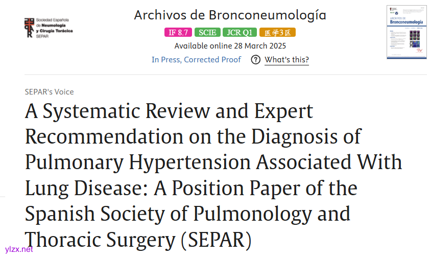 SEPAR发布权威立场文件:推进呼吸系统疾病相关肺动脉高压的早期诊断和个体化管理