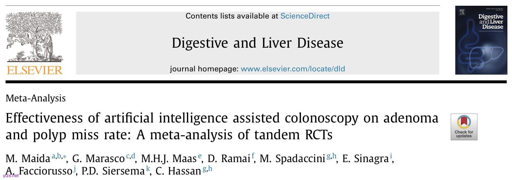 Maida M, Marasco G, Maas MHJ, Ramai D, Spadaccini M, Sinagra E, Facciorusso A, Siersema PD, Hassan C. Effectiveness of artificial intelligence assisted colonoscopy on adenoma and polyp miss rate: A meta-analysis of tandem RCTs. Dig Liver Dis. 2025 Jan;57(1):169-175. doi: 10.1016/j.dld.2024.09.003. Epub 2024 Sep 24. PMID: 39322447.