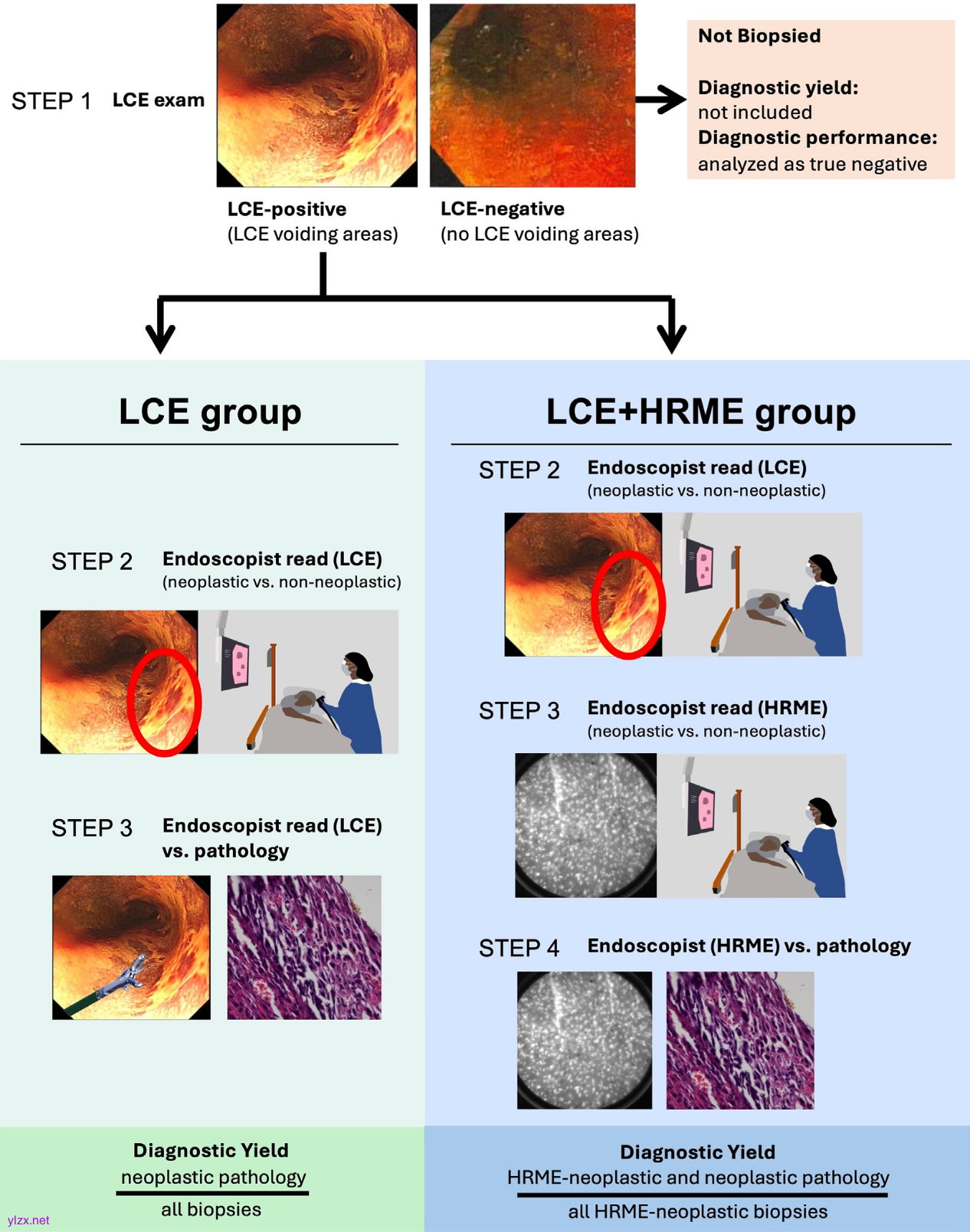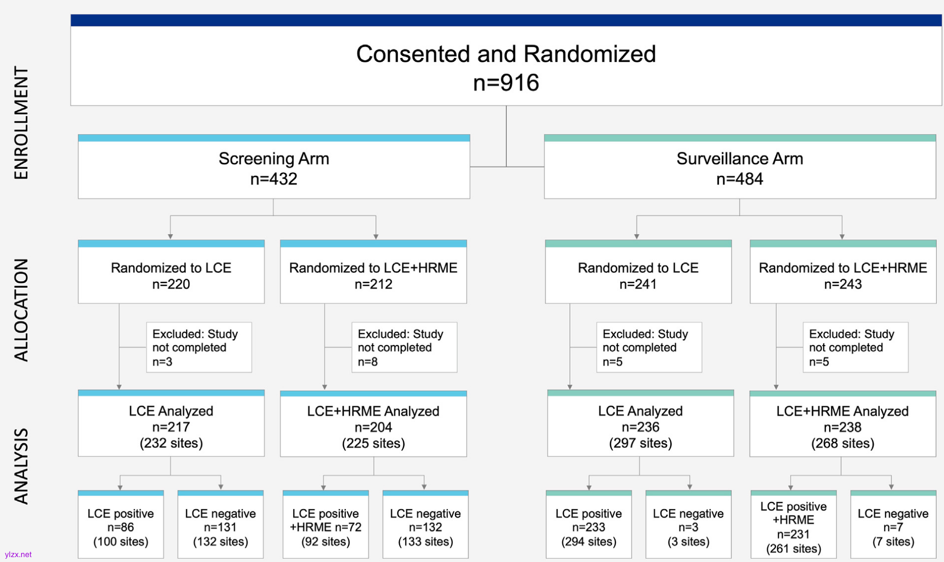 研究对象为中国和美国的患者,涵盖了从学术中心到基层医疗机构的多样化临床背景。参与者按照1:1的比例随机分为两组:标准护理组(仅使用LCE)和实验组(LCE+HRME)。研究的主要终点是比较两组在诊断效率和临床影响方面的差异,金标准为共识病理学结果。研究共招募了916名符合条件的参与者,其中859名(93.8%)来自中国,36名(3.9%)来自美国。参与者被分为两个子队列:筛查队列和监测队列。在筛查队列中,217名参与者接受了LCE检查,204名接受了LCE+HRME检查;在监测队列中,236名参与者接受了LCE检查,238名接受了LCE+HRME检查。为了保证结果的可靠性,研究团队对所有参与者的病理结果进行了盲法分析,并采用了严格的统计方法评估HRME的性能。