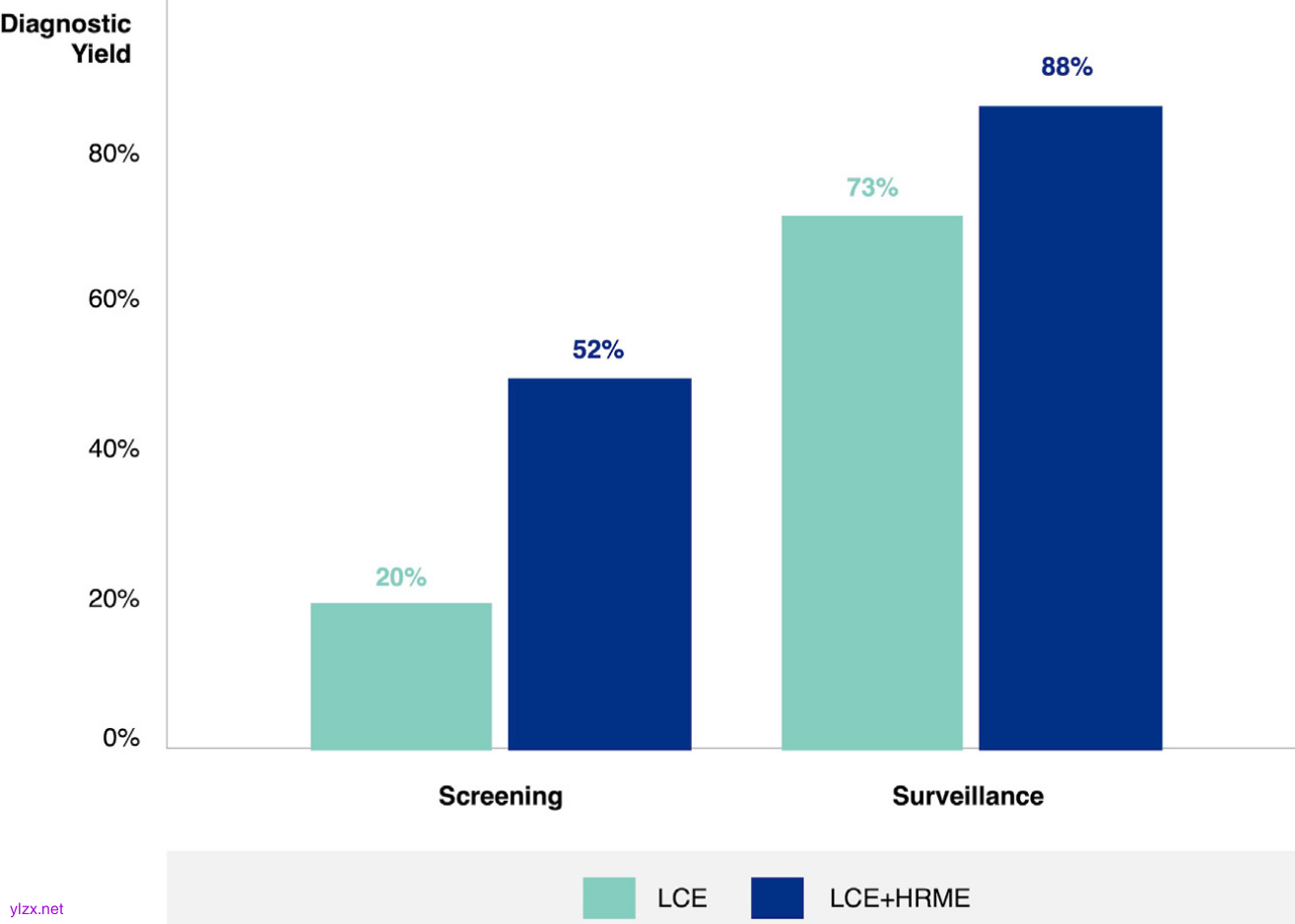 图3 LCE与LCE+HRME在筛查和监测参与者中的诊断率