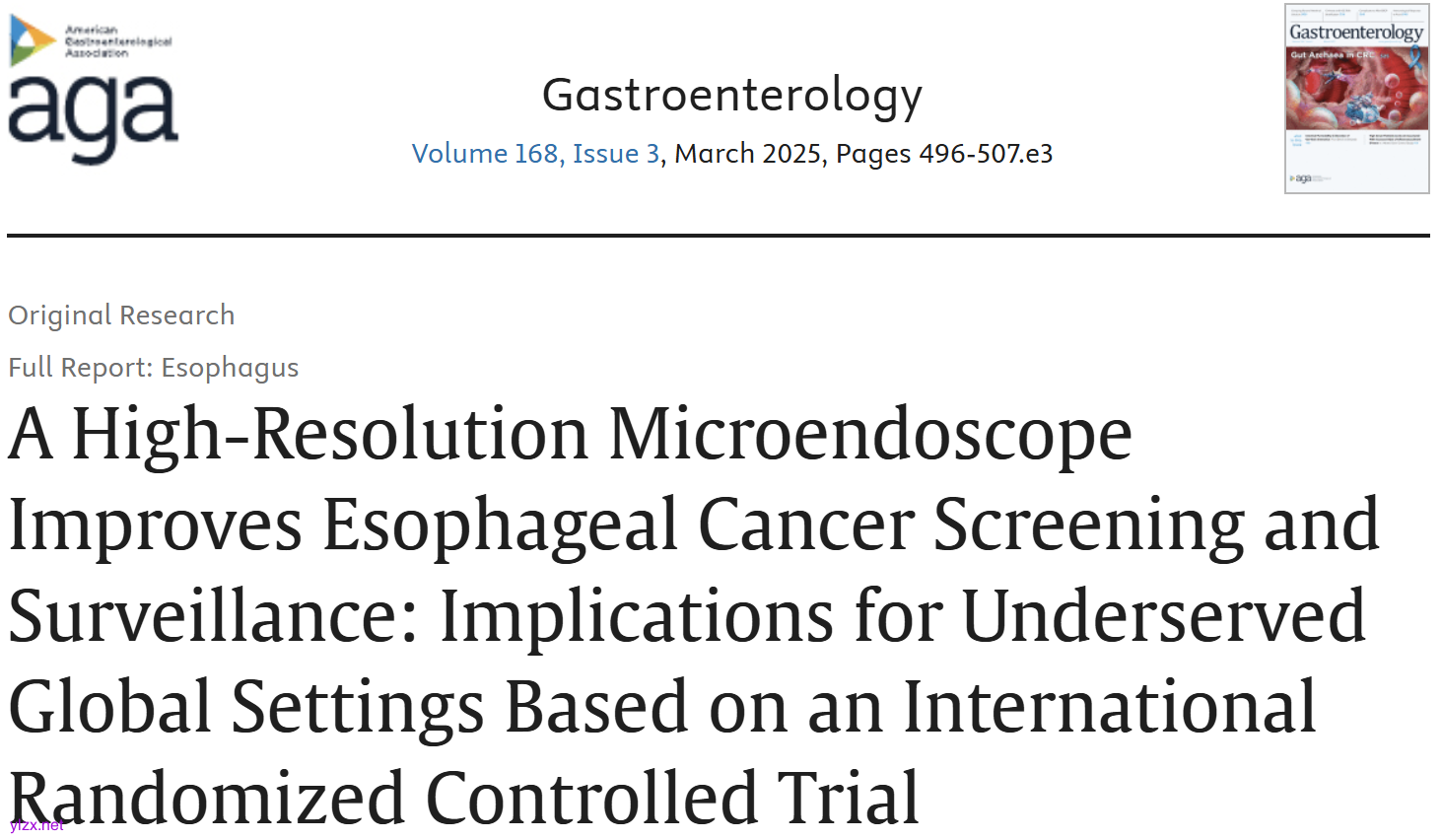 Gastroenterology:高分辨率显微内窥镜改善食管癌筛查和监测