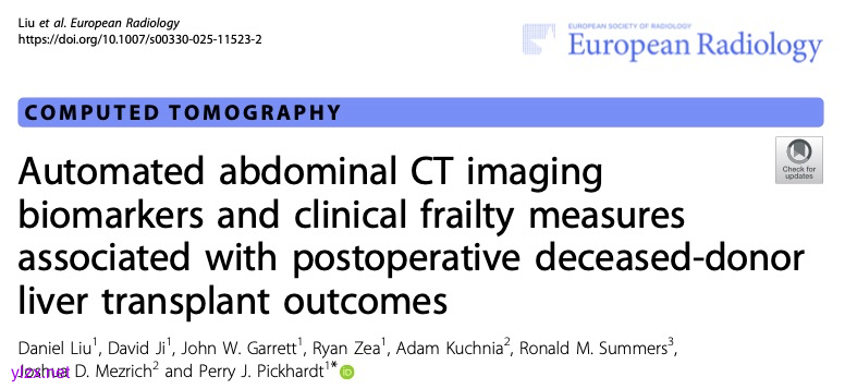 Daniel Liu,David Ji,John W Garrett,et al.Automated abdominal CT imaging biomarkers and clinical frailty measures associated with postoperative deceased-donor liver transplant outcomes.DOI:10.1007/s00330-025-11523-2