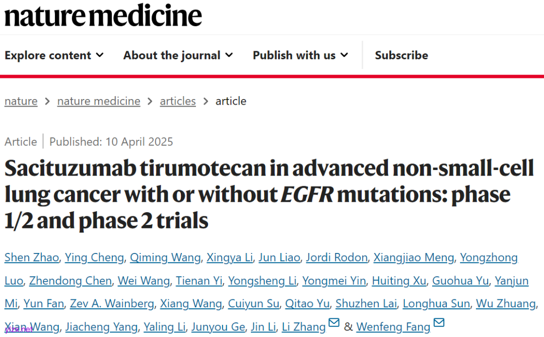 Nat Med:张力&方文峰团队发现芦康沙妥珠单抗能使95%肺癌患者持续缓解6个月!