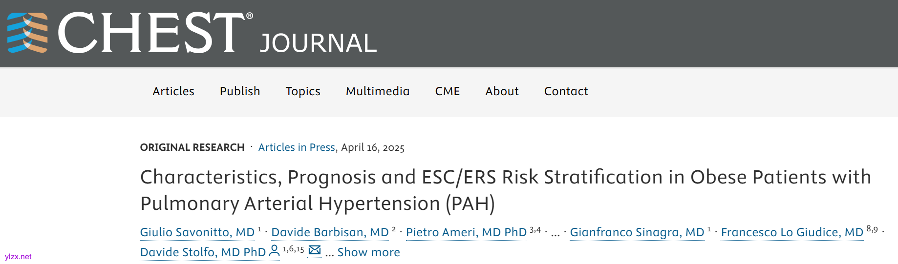 CHEST:肥胖是否影响肺动脉高压患者预后?欧洲多中心研究揭示答案