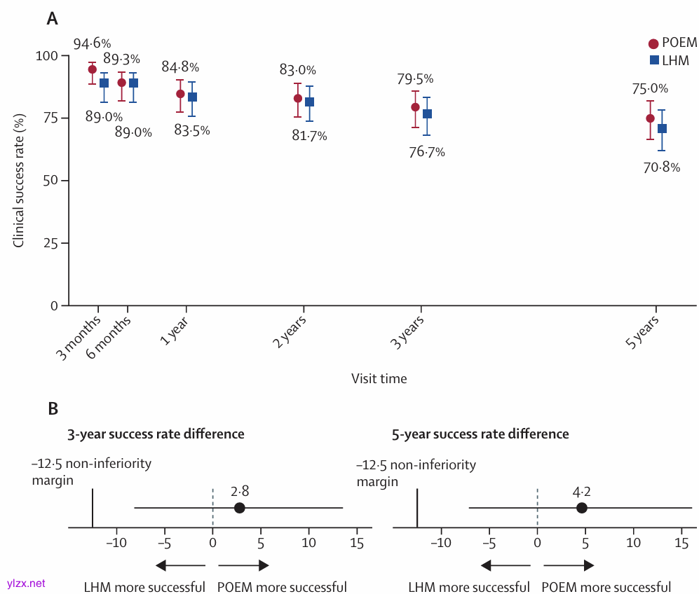 贲门失弛缓症(achalasia)是一种罕见的食管运动障碍性疾病,其特征是食管下括约肌(lower esophageal sphincter, LES)无法正常松弛,同时伴有食管体部蠕动功能丧失,导致吞咽困难、食物滞留和反流等症状。在治疗方面,传统的腹腔镜Heller肌切开术(laparoscopic Heller’s myotomy, LHM)联合Dor胃底折叠术长期以来被视为金标准。然而,近年来,经口内镜下肌切开术(per-oral endoscopic myotomy, POEM)作为一种微创手术方法迅速兴起,并以其较低的侵入性和良好的短期效果引起了广泛关注。这项研究由欧洲多个国家的研究中心合作完成。该研究于2025年3月发表于《The Lancet Gastroenterology & Hepatology》期刊。这项研究比较了POEM与LHM联合Dor胃底折叠术在治疗特发性贲门失弛缓症患者中的长期疗效和安全性。