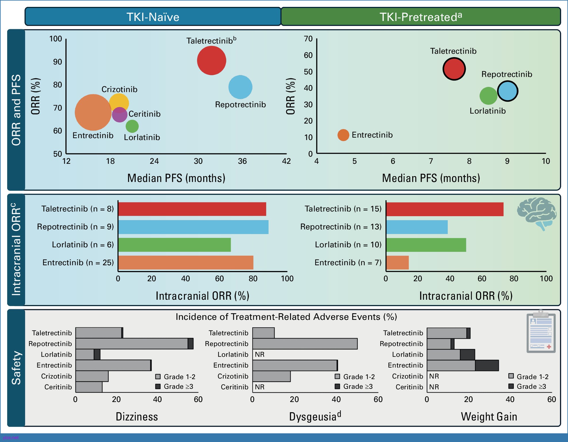 - 更优的安全性特征: 与其他ROS1 TKI相比,Taletrectinib的神经系统毒性显著降低,有望提高患者的治疗依从性和生活质量,实现更优的长期治疗效果。