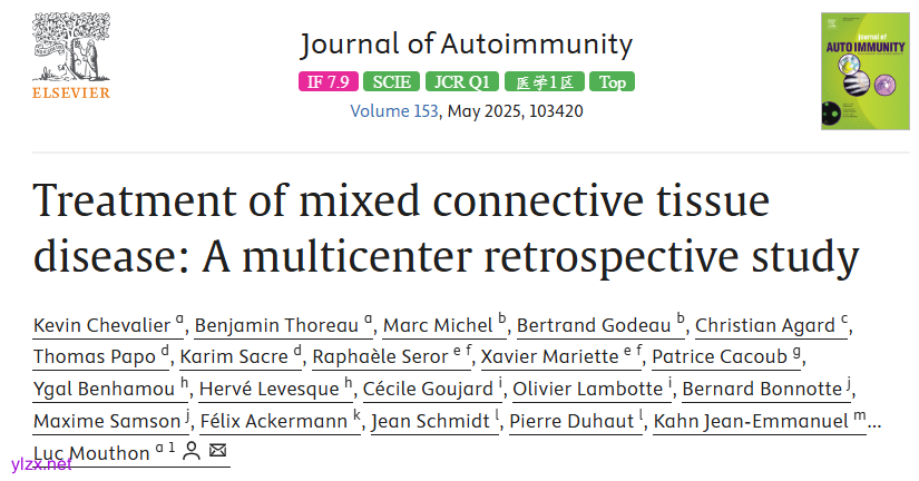 J Autoimmun:法国多中心研究揭示混合性结缔组织病(MCTD)治疗现状与用药趋势