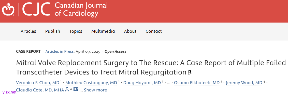 Chan VF, Castonguay M, Hayami D, Crowell R, Sumaya W, Elkhateeb O, Wood J, Cote C. Mitral Valve Replacement Surgery to The Rescue: A Case Report of Multiple Failed Transcatheter Devices to Treat Mitral Regurgitation. Can J Cardiol. 2025 Apr 9:S0828-282X(25)00301-0. doi: 10.1016/j.cjca.2025.04.003. Epub ahead of print. PMID: 40216021.