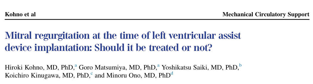 近日,Hiroki Kohno等人在《The Journal of Thoracic and Cardiovascular Surgery》发表了研究《Mitral regurgitation at the time of left ventricular assist device implantation: Should it be treated or not?》,我们特邀西安高新医院陈文生教授对文献进行解读。