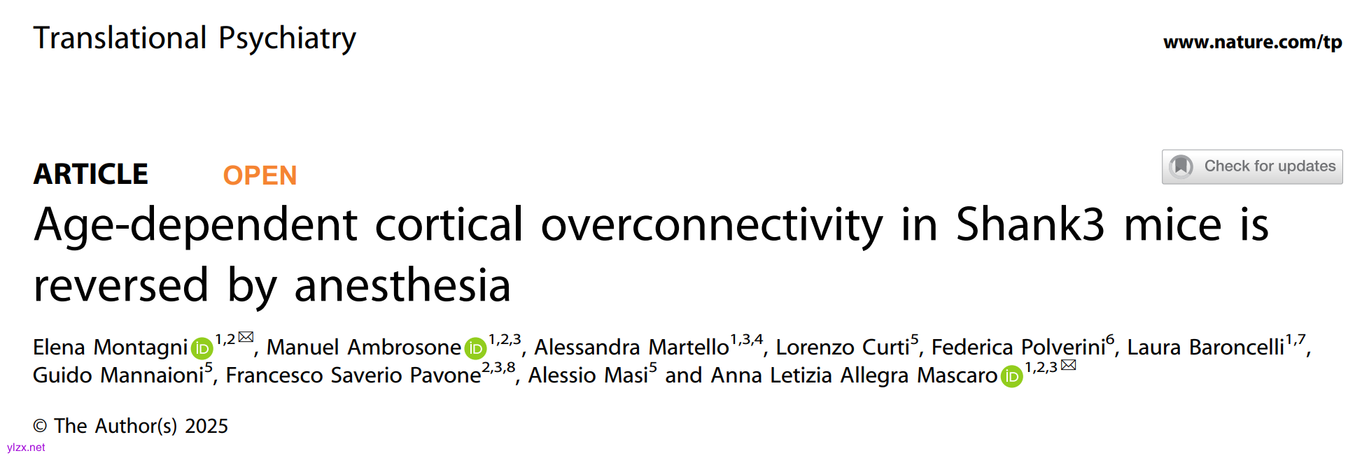 Montagni, E., Ambrosone, M., Martello, A. et al. Age-dependent cortical overconnectivity in Shank3 mice is reversed by anesthesia. Transl Psychiatry 15, 154 (2025). https://doi.org/10.1038/s41398-025-03377-5