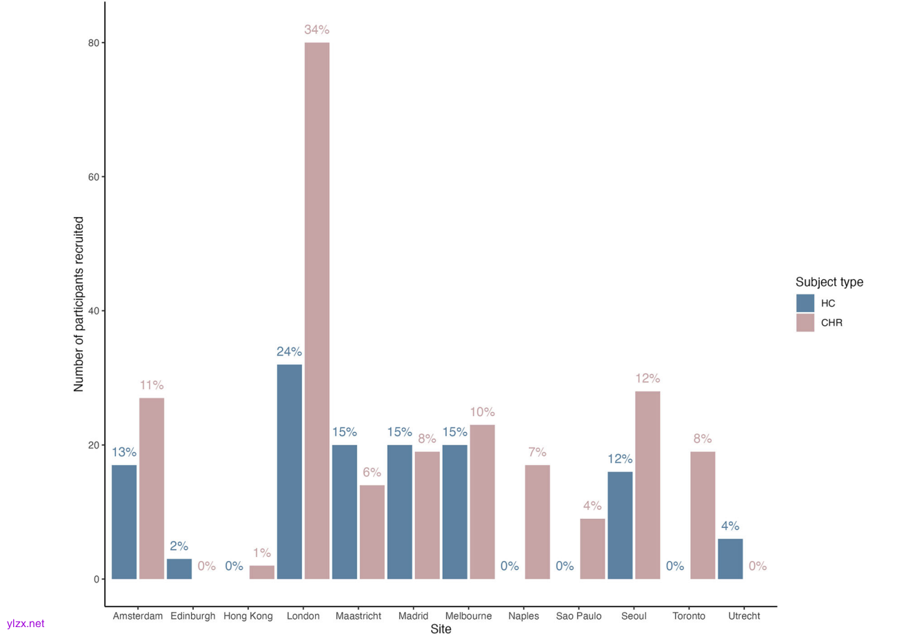 这项自然前瞻性研究覆盖欧洲、澳大利亚、亚洲和美洲的12个中心,纳入238名CHR个体和134名健康对照(HC),在基线、3、6、12个月进行评估,并延伸至18和24个月随访。基线分析显示,CHR组与HC组在年龄、教育年限、智商及职业和婚恋状态上存在显著差异,而大麻和烟草使用率无组间差异,但CHR组中烟草滥用中高风险比例更高。CHR样本中53.4%符合焦虑障碍诊断标准,52.9%符合心境障碍标准,38.7%服用抗抑郁药,13.9%使用抗精神病药。随访期间,25名CHR个体(10.5%)转化为精神病,但整体上CHR组的功能和 attenuated精神病症状有所改善。与近期其他多中心研究一致,该队列表现出高共病率和相对较低的转化率,凸显了CHR人群的临床异质性,并提示需建立涵盖功能和跨诊断结局的更广泛预后模型。
