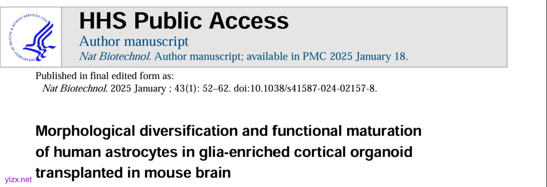 Morphological diversification and functional maturation of human astrocytes in glia-enriched cortical organoid transplanted in mouse brain. Nat Biotechnol. 2025 Jan;43(1):52-62. doi: 10.1038/s41587-024-02157-8. Epub 2024 Feb 28. PMID: 38418648; PMCID: PMC11349933.