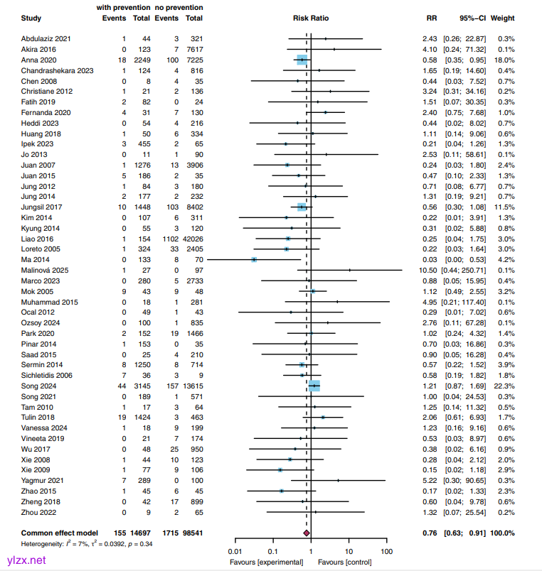 纳入的116,015例RD患者中,TPT组总体TBD发病风险降低24%(RR 0.76,95%CI 0.63–0.91)。关键亚组分析显示:
