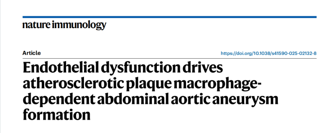 Nat Immunol:内皮功能障碍与动脉粥样硬化斑块巨噬细胞共同驱动腹主动脉瘤形成