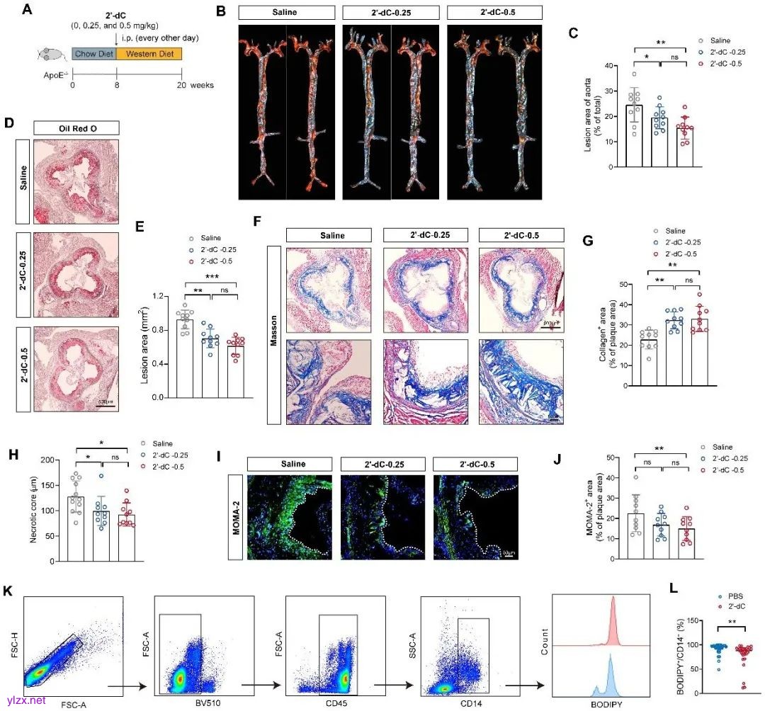 最后,研究者发现小分子药物2'-deoxycytidine可通过抑制Dax1表达,改善ApoE-/-小鼠动脉粥样硬化斑块形成,具有较好的转化潜力。