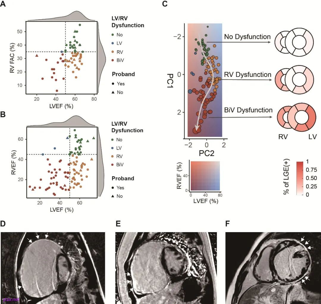 图2:影像学分析揭示DSG2/DSC2患者左右心室进展性受累特征