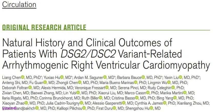 Circulation 阜外医院胡盛寿/陈亮团队领衔国际多中心研究阐明DSG2/DSC2相关致心律失常性心肌病致病特征