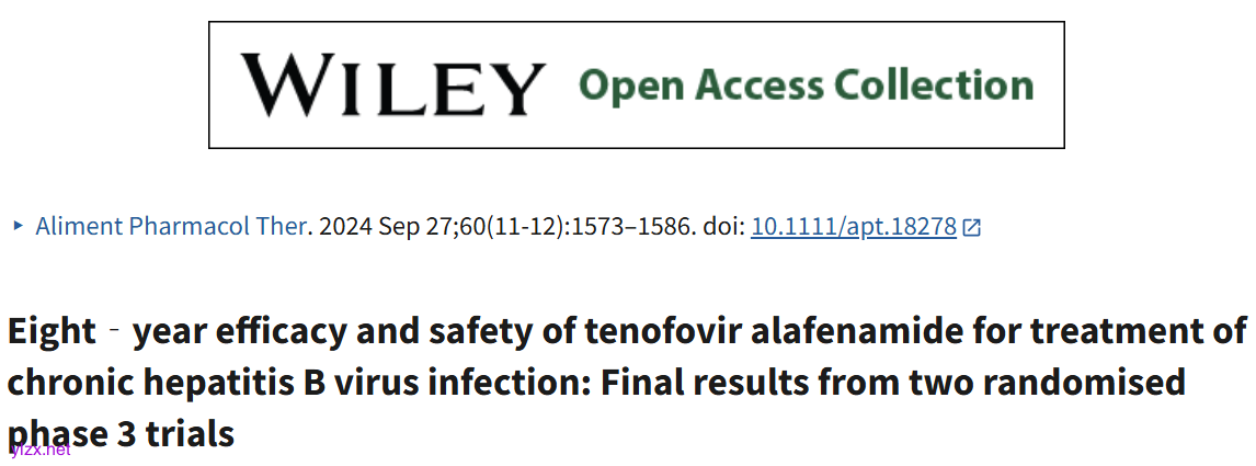APT:替诺福韦艾拉酚胺治疗慢性乙型肝炎病毒感染的8年疗效和安全性