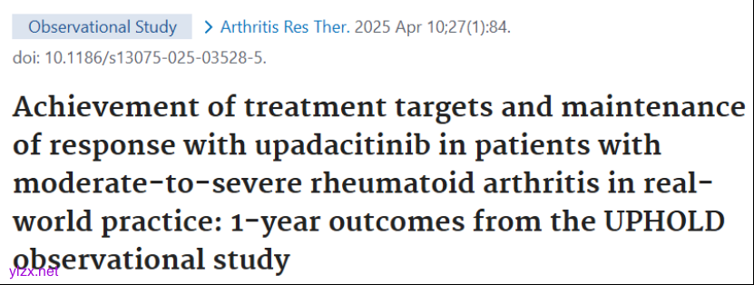 Arthritis Res Ther:真实世界数据显示,Upadacitinib半年内近五成类风湿关节炎患者缓解,疗效可持续至一年