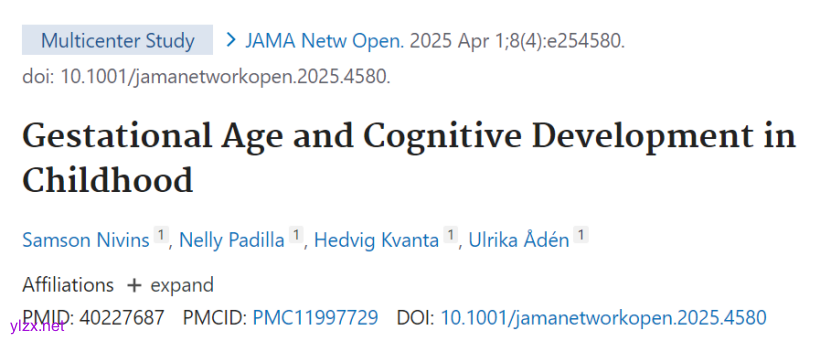 Nivins S, Padilla N, Kvanta H, Ådén U. Gestational Age and Cognitive Development in Childhood. JAMA Netw Open. 2025 Apr 1;8(4):e254580. doi: 10.1001/jamanetworkopen.2025.4580. PMID: 40227687; PMCID: PMC11997729.