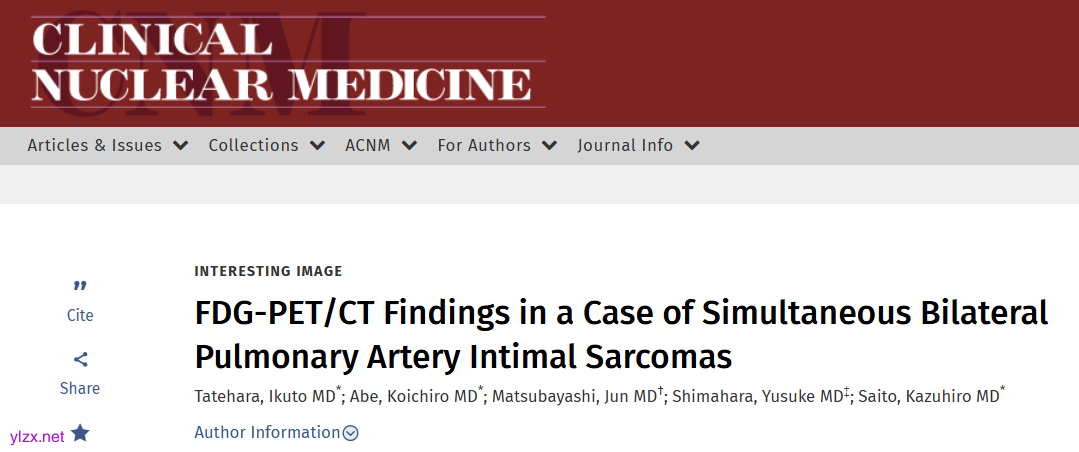 Clin Nucl Med:FDG-PET/CT助力诊断罕见双侧肺动脉内膜肉瘤一例
