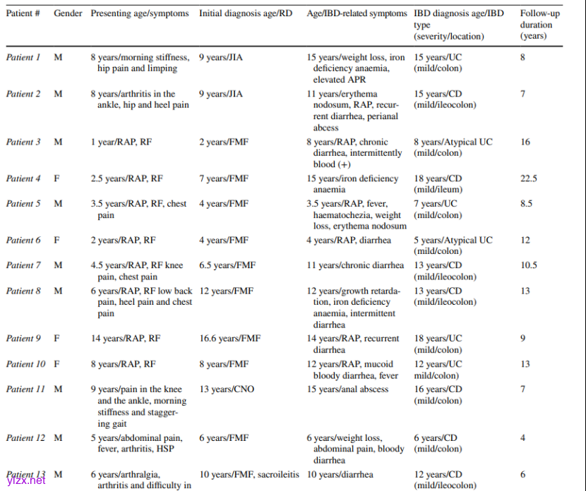 · FMF患者中3%(20/650)合并IBD,CNO患者7.5%(3/40),JIA患者1.2%(2/170)。