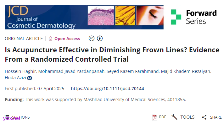 J Cosmet Dermatol最新的一篇研究报告,研究者旨在评估全身针刺与面部针刺对减少伊朗马什哈德地区30-59岁女性眉间纹的效果。