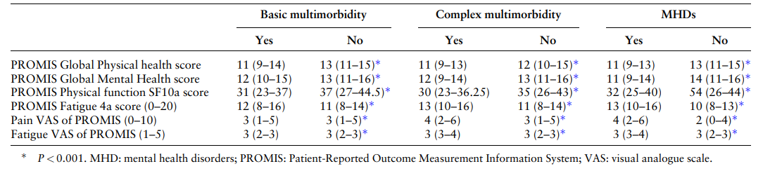 · 合并BM或MHDs的IIM患者PROMIS生理健康评分(PGP)降低1.11分(P<0.001),心理健康评分(PGM)降低2.22分(P<0.001),疲劳评分(F4a)升高2.17分(P<0.001)。