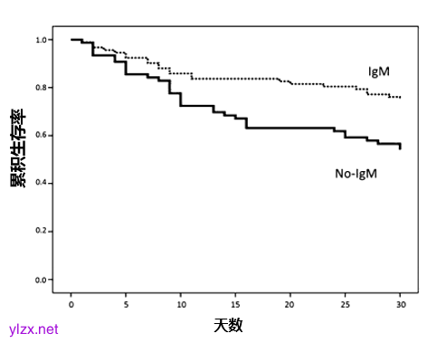 图3 接受与未接受富含IgM的IVIG患者30天累积生存率
