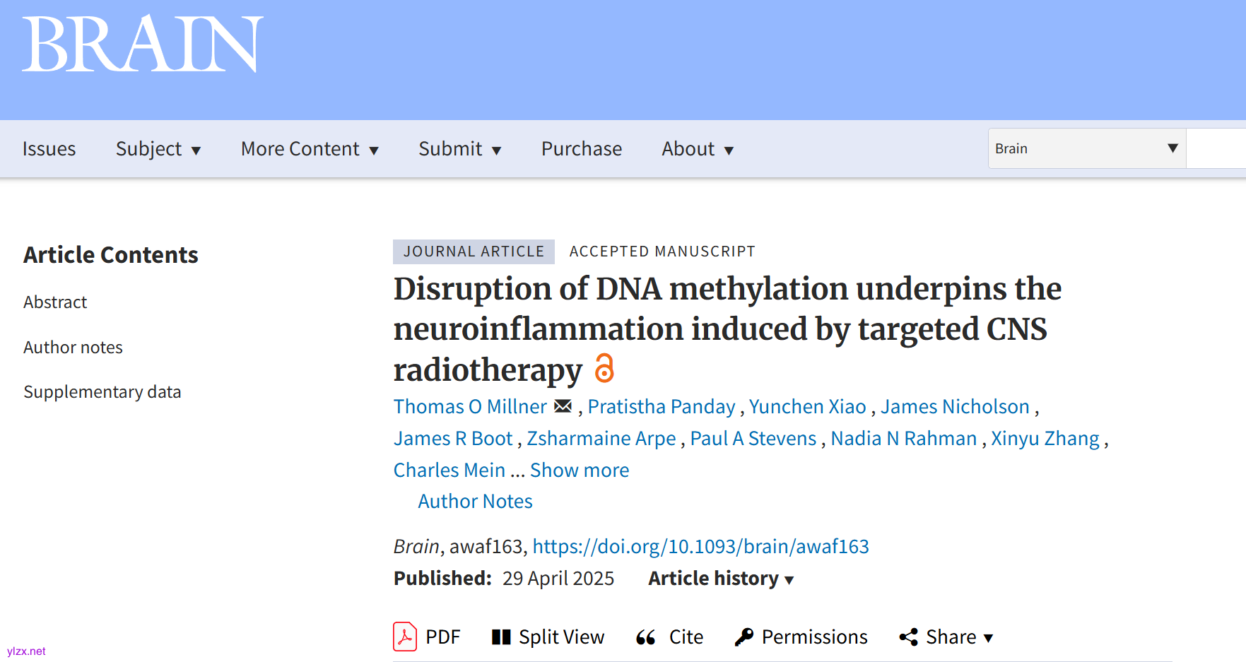 Millner TO, Panday P, Xiao Y, et al. Disruption of DNA methylation underpins the neuroinflammation induced by targeted CNS radiotherapy. Brain 2025. doi:10.1093/brain/awaf163