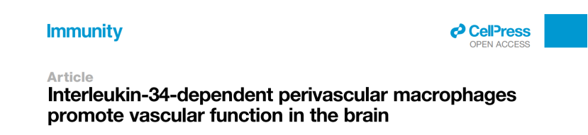 Interleukin-34-dependent perivascular macrophages promote vascular function in the brain. Immunity. 2025 Apr 26:S1074-7613(25)00166-9. doi: 10.1016/j.immuni.2025.04.003. Epub ahead of print. PMID: 40315842.